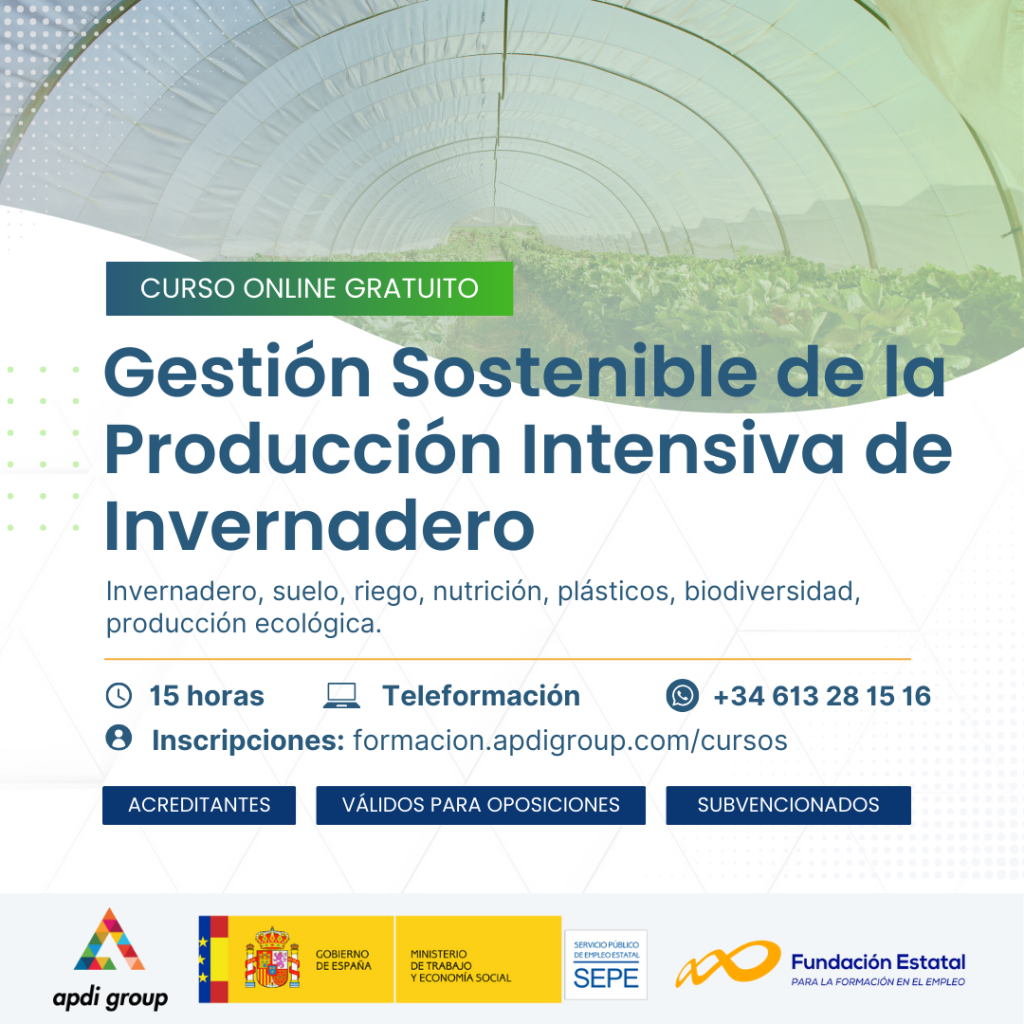 Este curso está diseñado para conocer fundamentos básicos sobre la producción intensiva de invernadero desde una gestión sostenible. A lo largo de este programa de aprendizaje vas a profundizar en aspectos como la gestión de la nutrición, las reservas y las plagas, además del uso de plásticos y envases biodegradables para logra una gestión sostenible y posibles transformaciones en cultivo ecológico y una producción integrada.