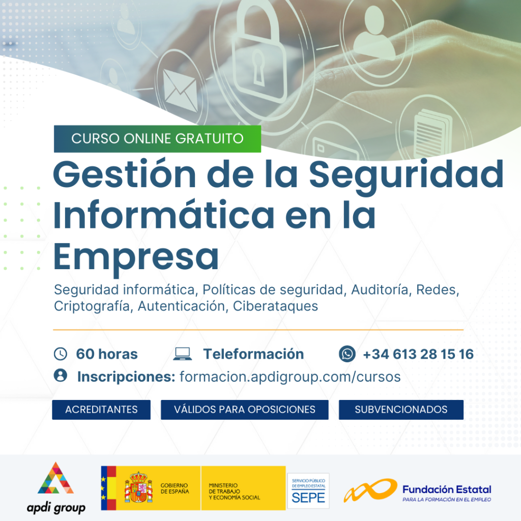 Este curso está diseñado para conocer fundamentos básicos sobre la gestión de la seguridad informática en la empresa para poder aplicarlos en tu vida profesional o diaria. A lo largo de este programa de aprendizaje vas a profundizar en la normativa, la gestión, la autentificación, los ataques remotos y otros elementos que intervienen en la seguridad.