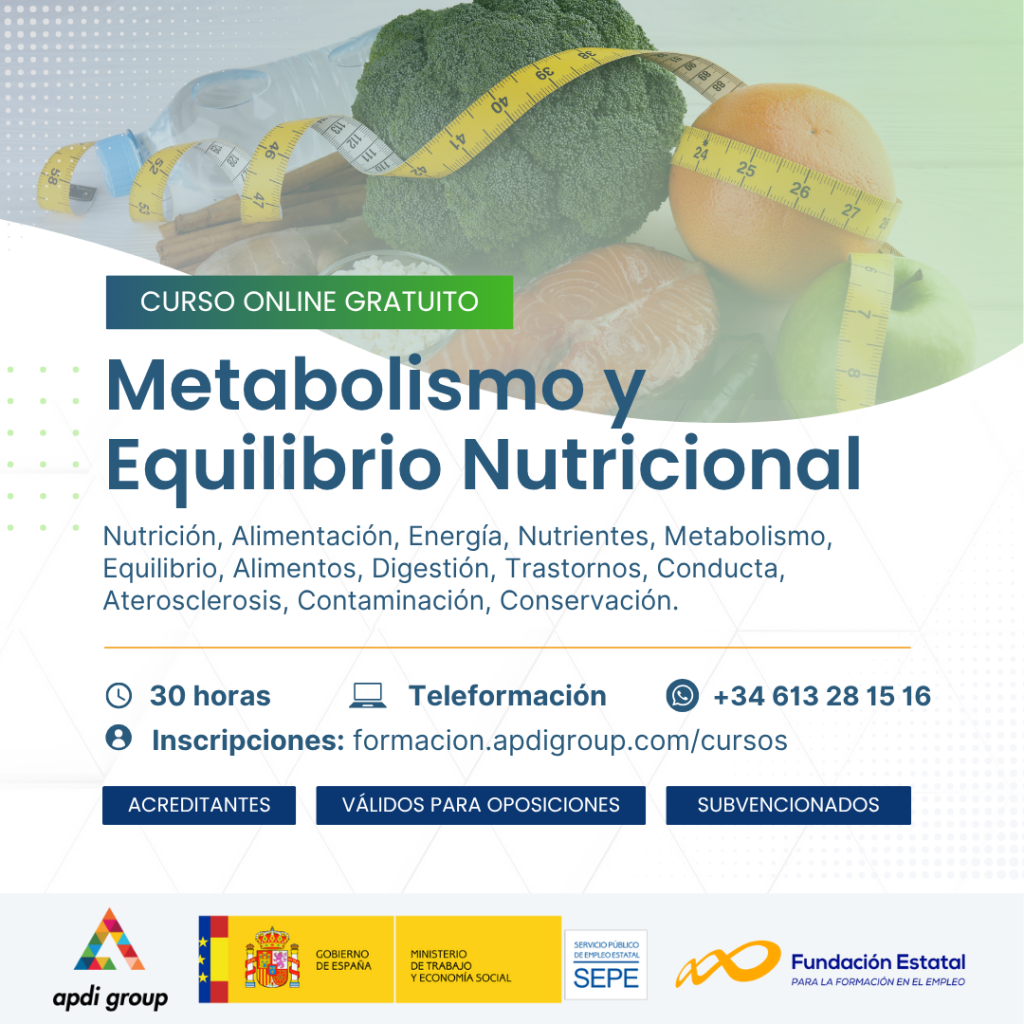 Este curso está diseñado para conocer fundamentos básicos sobre el metabolismo y equilibrio nutricional.  A lo largo de este programa de aprendizaje vas a profundizar en conocer el metabolismo humano, los tipos de alimentos y la pirámide alimentaria, así como los trastornos nutricionales y cómo llevar a cabo la higiene y la conservación de los alimentos