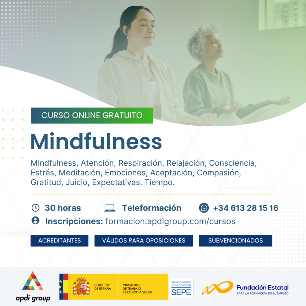 Este curso está diseñado para conocer fundamentos básicos sobre el mindfulness. A lo largo de este programa de aprendizaje vas a profundizar en aspectos relacionados con los principios básicos, técnicas de relajación y respiración, gestión del estrés y del tiempo, ampliación de los niveles de consciencia e incorporar el mindfulness en el ámbito personal y laboral.